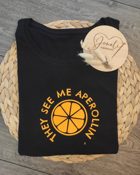 BÜGELBILD „They see me aperollin“ Aperol Spritz Aufdruck für T-Shirt Hoody Sweater oder Taschen
