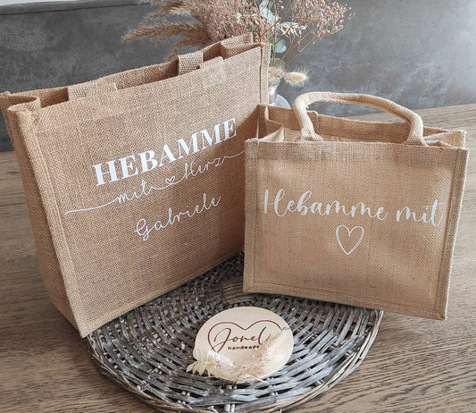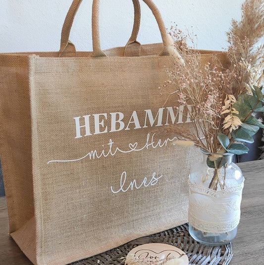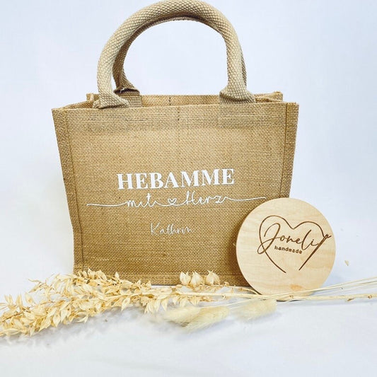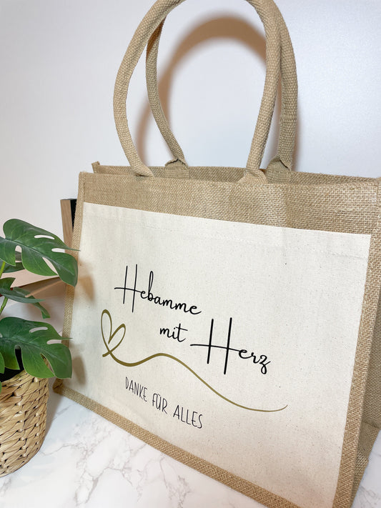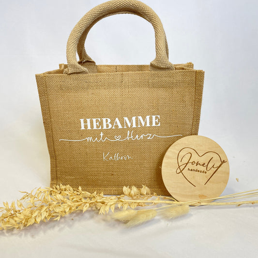 Hebamme mit Herz/ Abschiedsgeschenk/ Dankeschön für deine Hebamme / Jutetasche mit Baumwollfach