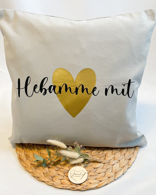 Kissenhülle, Kissenbezug Hebamme mit Herz oder mit deinem Wunschaufdruck, personalisierbar