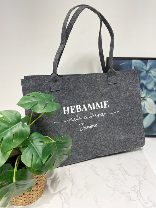 Hebamme mit Herz, Reisetasche, Weekender, Krankenhaustasche, Geburt, Baby/ Geschenk Hebamme personalisiert