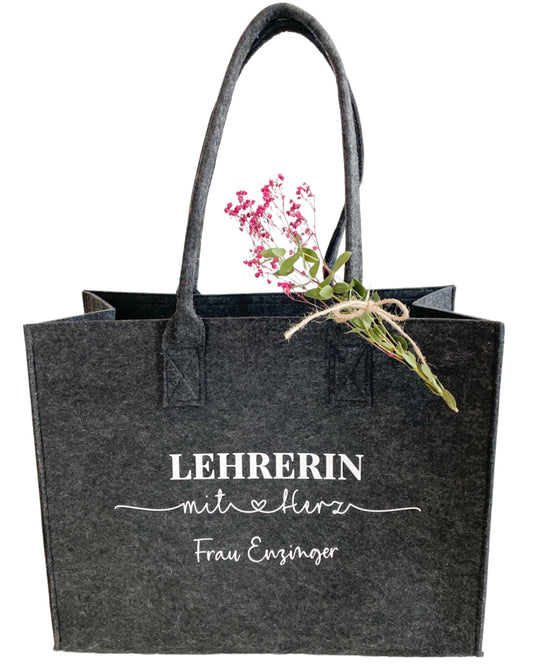Lehrerin mit Herz / Peronalisierter Filzshopper mit Innenfach / Dankeschön/ Abschiedgeschenk