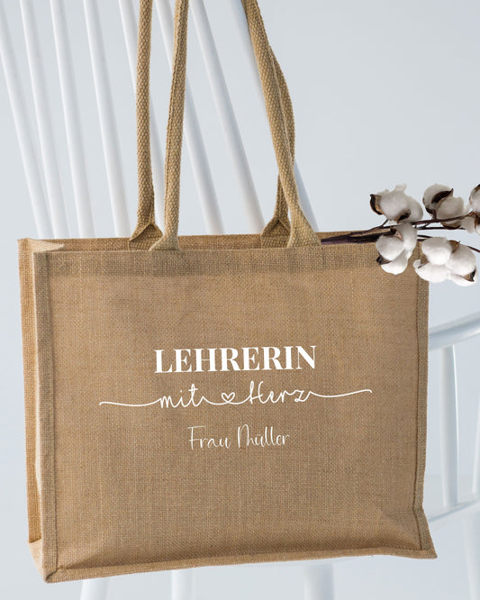 Trainerin mit Herz personalisiert, untersch. Designs, Abschiedsgeschenk, Dankeschön / Jutetasche