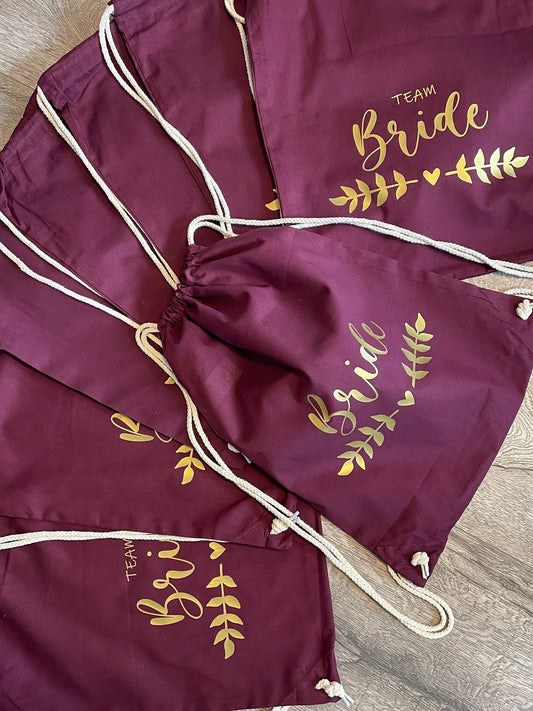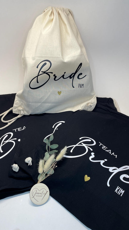 JGA Rucksack /Junggesellinnenabschied / Turnbeutel / Braut / Team Bride / verschiedene Designs - Mengenrabatt