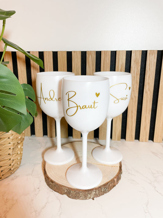Weinglas weiß / personalisiert für JGA / Team Braut / Junggesellenabschied