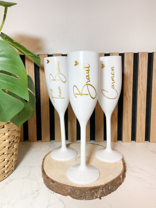Sektglas weiß / personalisiert für JGA / Team Braut / Junggesellenabschied