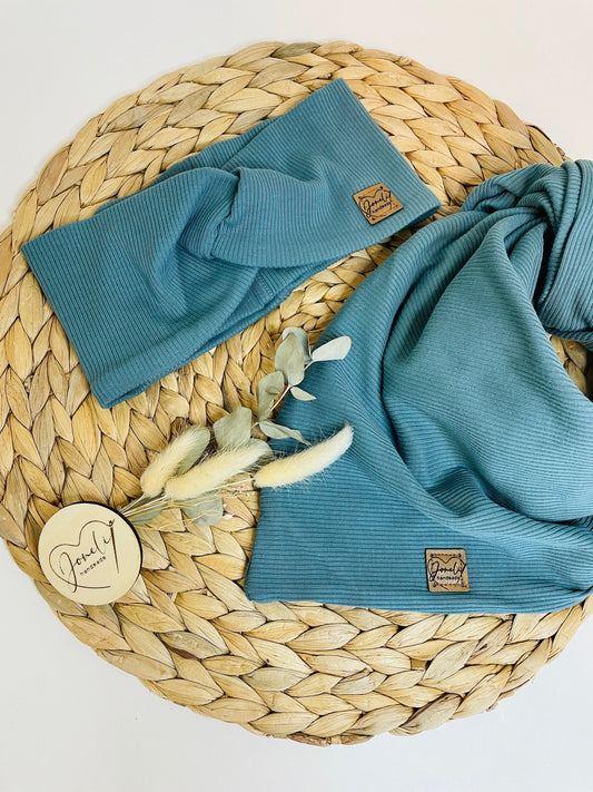 Headband with knot detail with matching triangular scarf for children and women in great colors made of rip jersey
