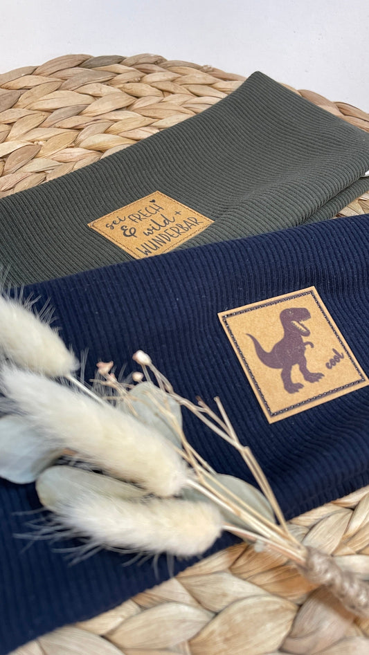 Stirnband mit Patch für Jungs und passendem Dreieckstuch oder Loopschal für Kinder in tollen Farben aus Rip Jersey