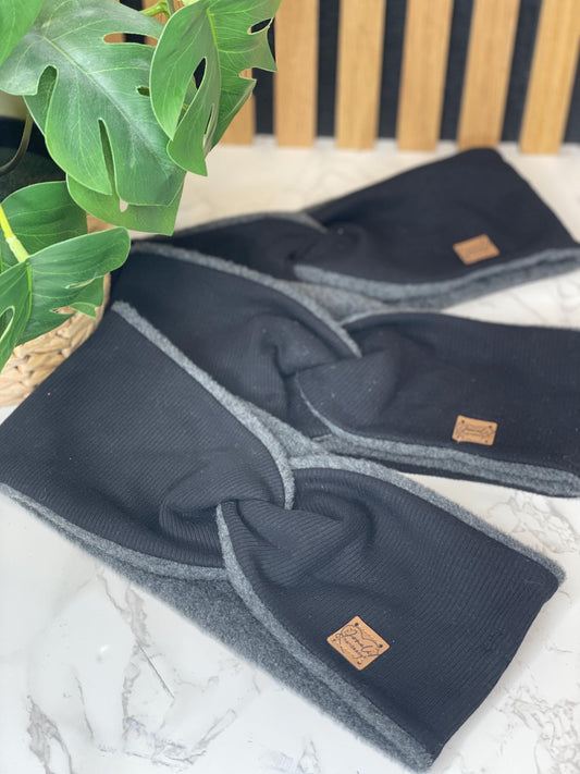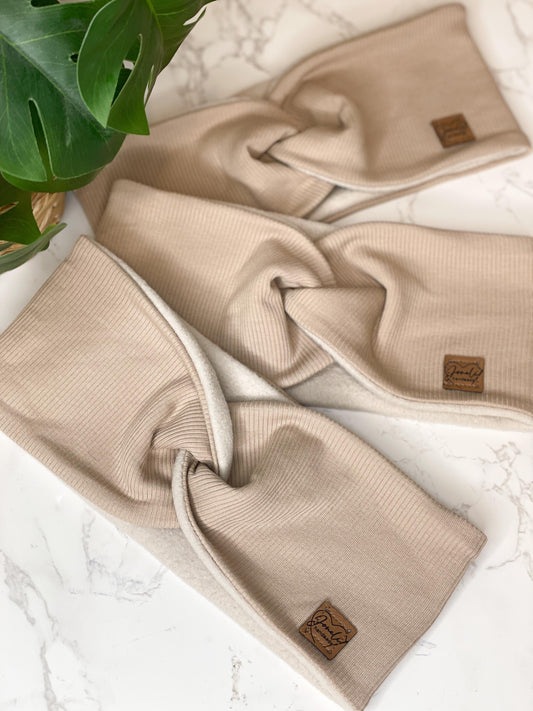 Warmes Stirnband mit Knotendetail aus Baumwollfleece und Ripjersey