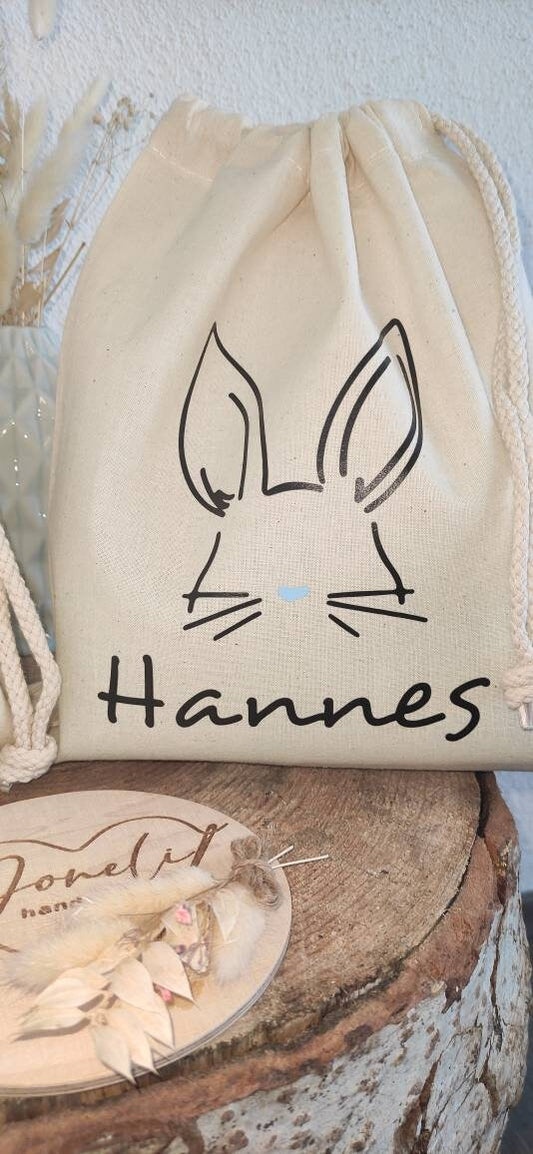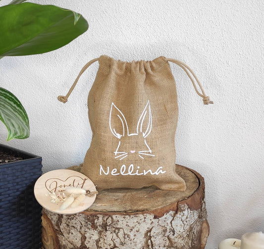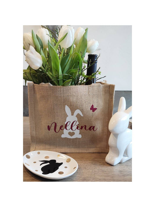 Personalized Easter bag made of jute with an Easter bunny + personalized with the name