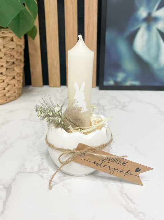 Easter gift set / Raysin Easter bunny / candle with heart and candle holder eggshell