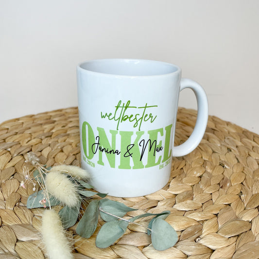 World's Best Uncle/World's Best Aunt, Ceramic Mug Personalized with the children's names / different colors possible