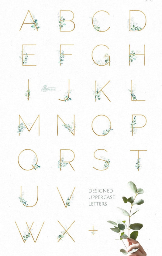 Personalized ceramic mug, name, initial letter with eucalyptus